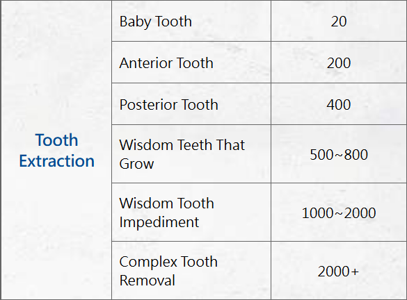 The table above shows our publicly listed pricing for wisdom teeth services on the Vickong Dental official website.
