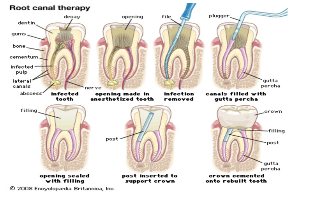 The dentist then fills the canals with gutta-percha coated with sealer, essentially patching the space to strengthen and protect the tooth.