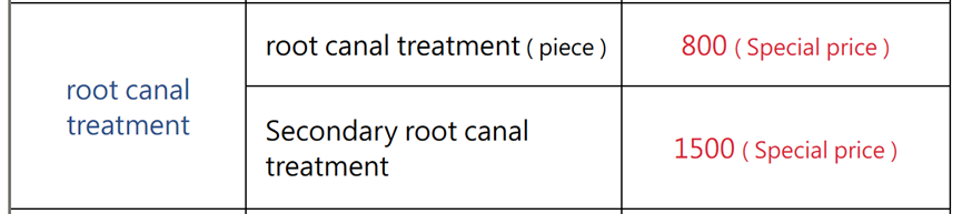 Front Tooth Root Canal: RMB 800